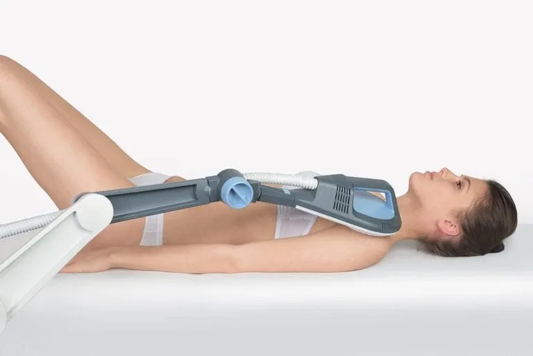 Sistemul compact pentru crioterapie FRIGOSTREAM oferă performanţe optimizate. Aparatul generează aer rece cu posibilitatea de ajustare a curentului de aer şi astfel permite răcirea direcţionată a zonelor corpului. De asemenea, oferă avantaje recunoscute faţă de tratamentele cu zăpada carbonică şi împachetările cu gheaţă. Ca şi în cazul sistemelor de aer condiţionat, aerul din interior este răcit şi trecut printr-un tub de tratament, fără a avea contact direct cu pielea, la temperaturi de până la –32 °C.