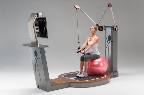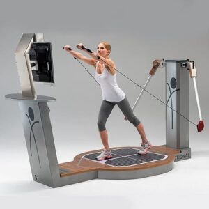 Este furnizat cu un PC cu touch screen și un ecran de feedback LCD WIDE, suprafață de detectare sarcină (senzor matrice sarcină) și o cameră integrată 3D pentru captare de mișcare.